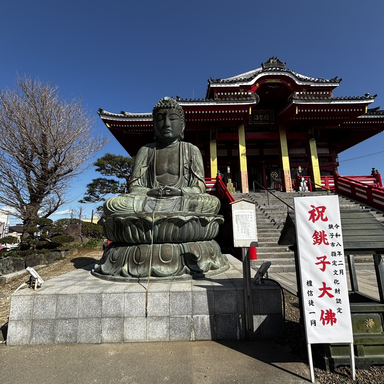 飯沼観音(円福寺)の境内に鎮座する「銚子大仏」が、このたび新たに銚子市指定有形文化財に登録されました。